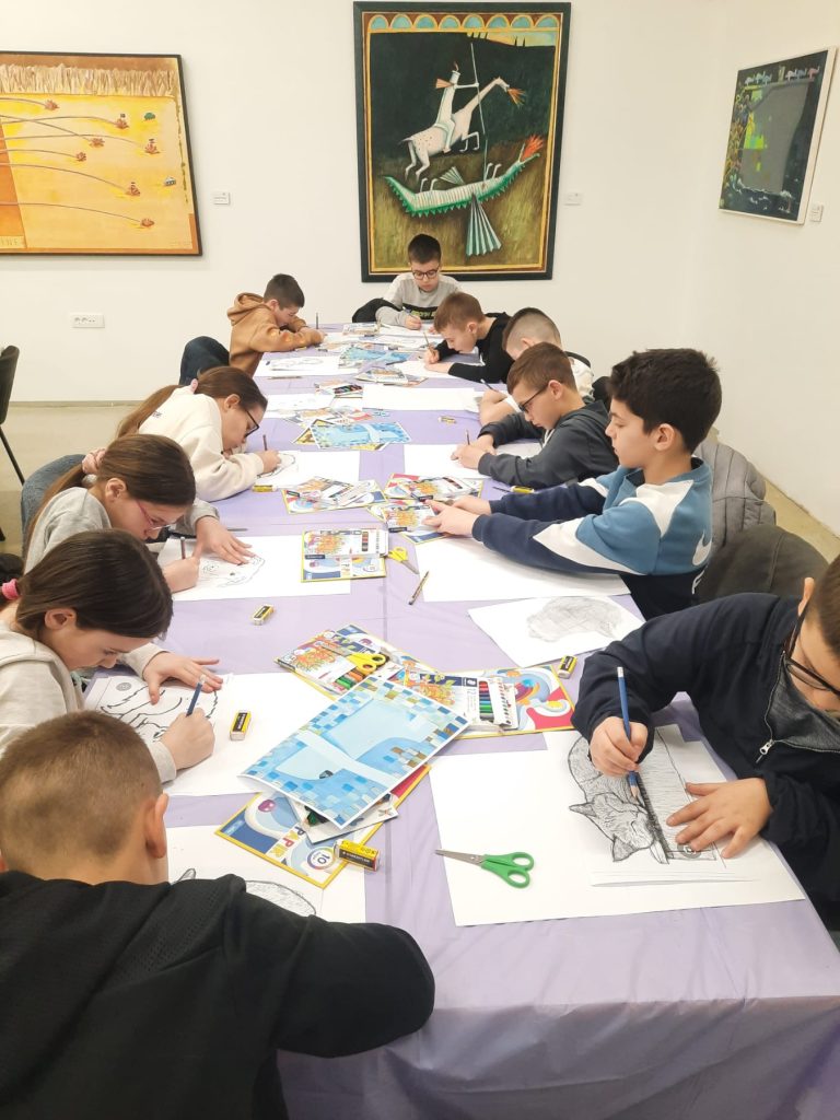 Muzej moderne umjetnosti Sveučilišta u Mostaru ugostio je naše učenice i učenike četvrtih razreda. Djecu je kroz edukativnu radionicu provela dr. art. Marijana Pažin-Ivešić. U ovome pitomome i ugodnome ambijentu, koji su ljubazni domaćini osmislili i priredili za našu djecu, čak i psi i mačke nisu vodili rat, nego su se susreli na predivnim likovnim uradcima učenika, izrađenih u frotaž tehnici, koja se često koristi za poticanje kreativnosti.